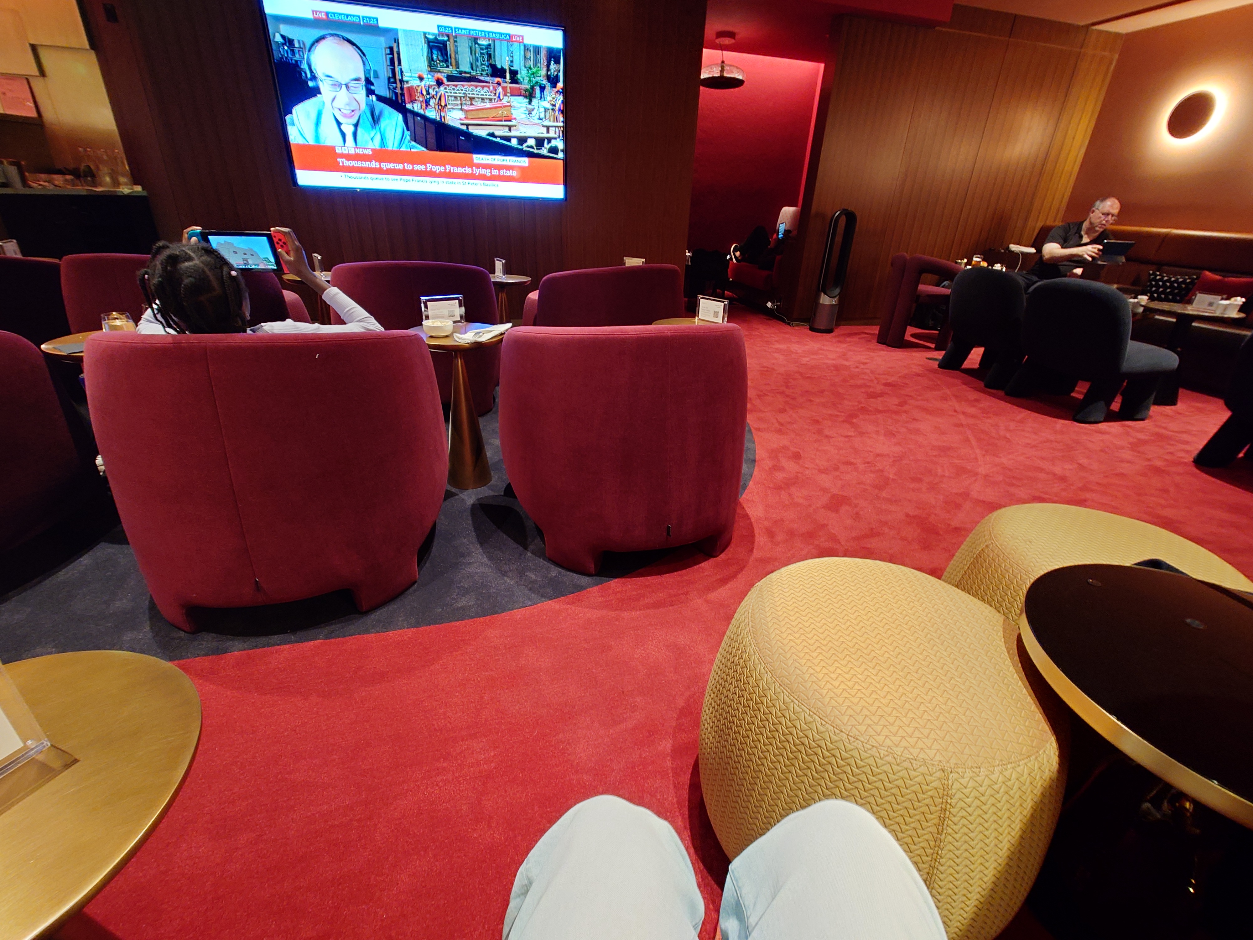 Hälsningar från Air France Lounge på Washington Dulles. Första besöket i en SkyTeam lounge med SAS. Mina tidigare resor har endast involverat SAS egna lounger eller Star Alliance lounger där SAS fortfarande har avtal. Blev insläppt 3,5 timmar före avgång utan tjafs. Trevlig lounge med champagne och ett acceptabelt utbud av mat. Dock väldigt välbesökt då loungen accepterar priority pass.