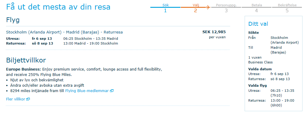Noterar att en C-klass ARN-MAD-ARN kostar 12195 SEK med KLM/AF, men med köpta alaskamiles inkl bonus kommer amnundan med ca 7000 SEK.