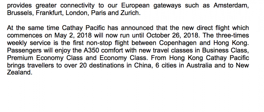 I morgen tidlig lander den første Cathay Pacific flyvning fra HKG til CPH. Maskinen er netop startet fra HKG og første flyvning gennemføres med B-LRC Airbus A350-900.
