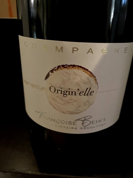 Orign'elle är instegscuveen, den är en blend av de tre vanliga druvsorterna men där Pinot Meunier står för 85%. Basåret var 2015 men blandad men reservvin. Hög syra men balanseras upp av fyllighet och viss brödighet.