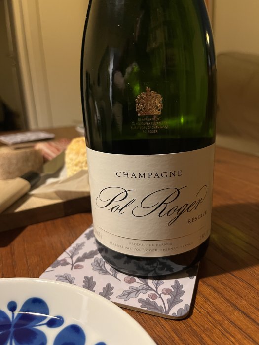 Den kan lättast beskrivas som en mat-champagne. Sedan fortsatte vi med en Richard Juhlin, den hade vi till drinkar. (häpp) och avslutningsvis vid 12-slaget så blev det en Tattinger & André Clouet - Chalky.