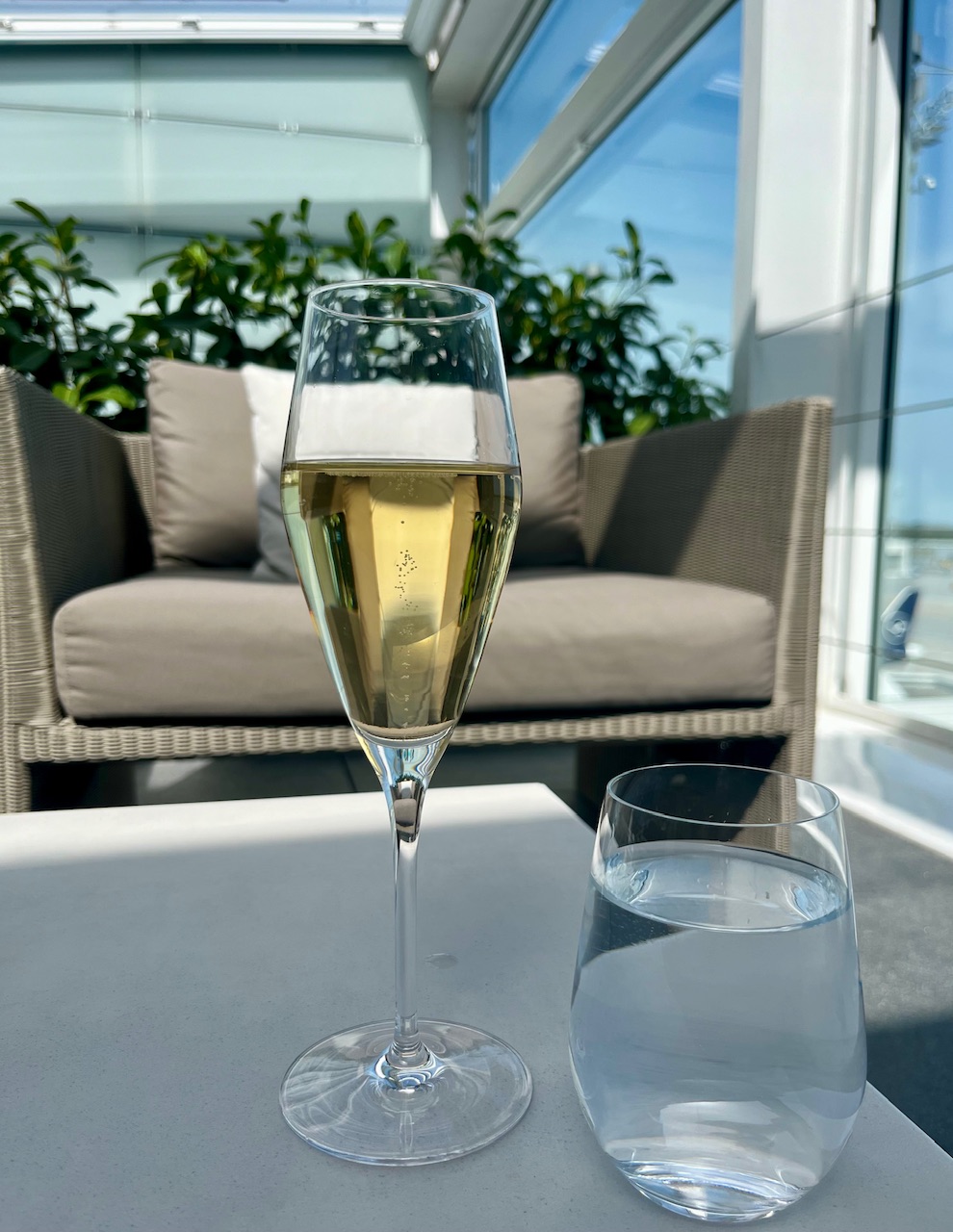 Pol Roger Vintage 2016 avnjutes på FCL Satelite MUC terrassen i strålande solsken.