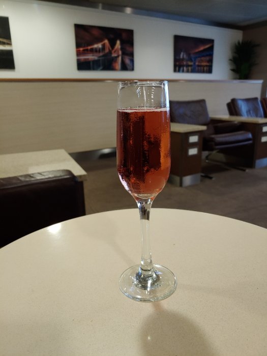Klockan är 7:10, så det är naturligtvis dags för frukostchampagne. ;) Gillar när det finns även rosé i loungerna. American Airlines First-loungen på LHR T3. Den här är inte ännu Flagship Lounge.