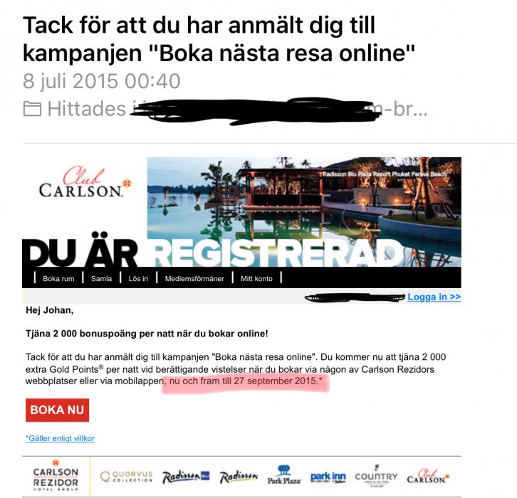 Brukade dock aldrig stå i terms och condition att man behöver boka någon viss period med Club Carlson.