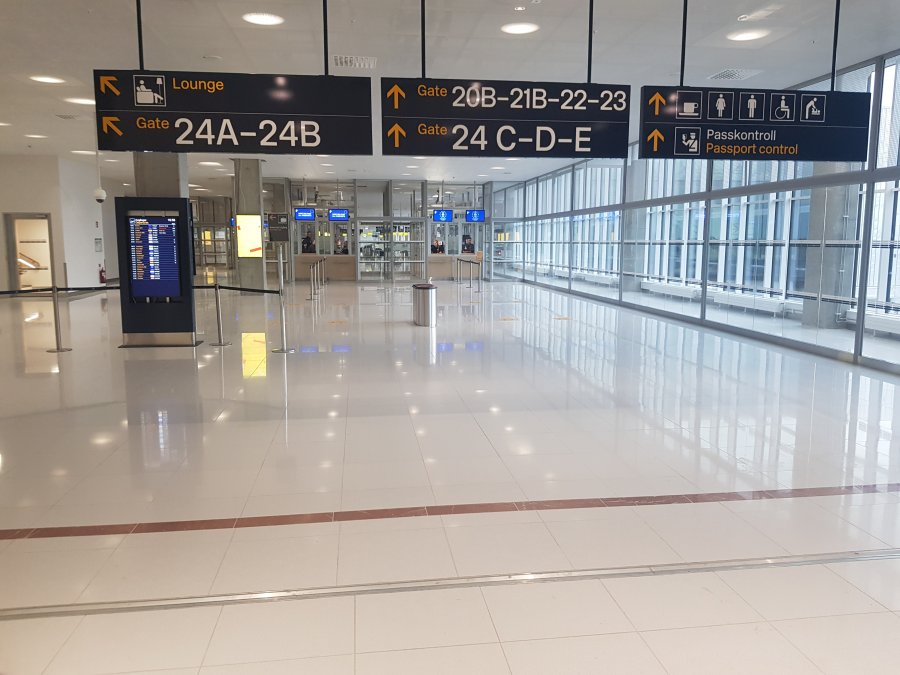 Nej längst bort till vänster i byggnaden, där man gick ner till bagagebanden, nu går man längre bort, svänger runt 180 grader och sedan ner. Denna del är vidare bort åt det hållet. Så passkontrollen är flyttad ca 50-70m längre bort.