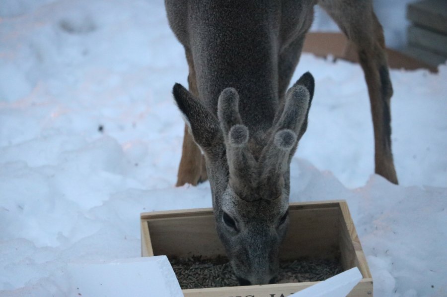 Började utfodra rådjuren för en månad sedan. Nu har det varit -15 till -20 i över två veckor. De kommer så fort de hör ljudet av viltfodret, sen stannar de kvar och då kommer andra växlande. Har en kamera som filmar allt dygnet runt, känns bra de får mat och energi. Känner igen flera från år till år. Nu en ny order på över 2,000 kr till rådjuren för 2 månader i taget och även till alla dessa fåglar runt huset.