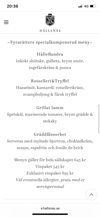 Hällsnäs fick nyligen 24/25 his DI:s Krogguiden. Beslöt oss spontant, denna lönedag, för att för-testa. 2500:- för 2, 4-rätters, badtunna, övernattning och frukost. Otroligt prisvärt och gott en vanlig tisdag i oktober.