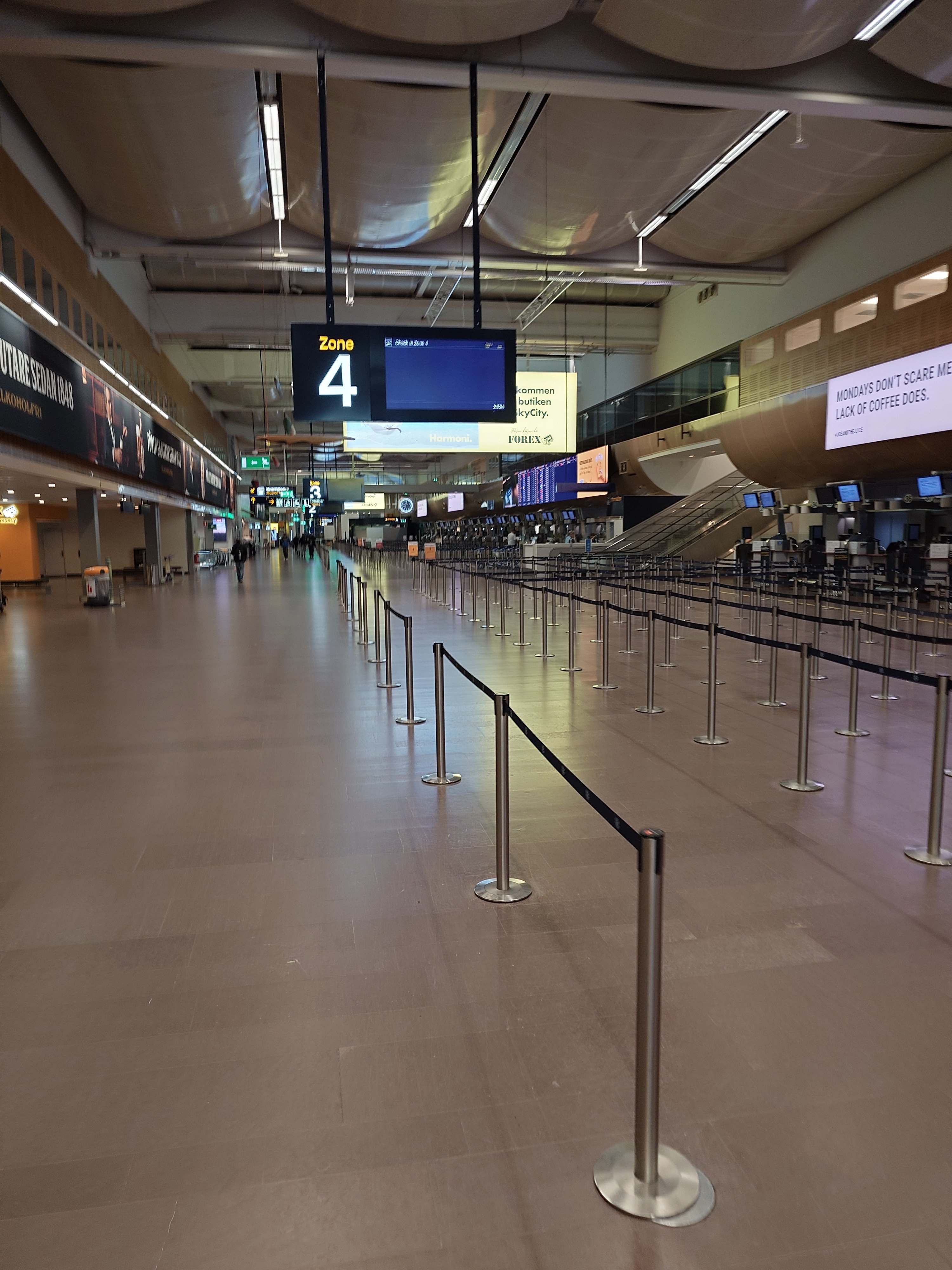 Sen påskkväll på Arlanda. Tidigt imorgon kommer det vara fullt med folk här och världens kacklande. Idag är det bara tyst.