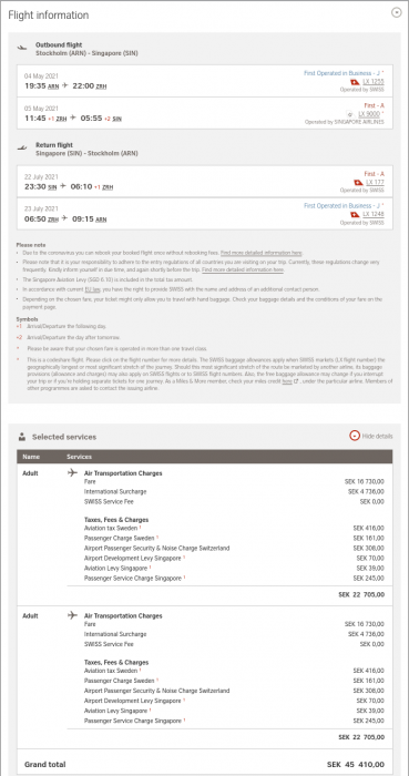 Håller med, å andra sidan är det väl orimligt att det skulle kosta dryga 11papp för två pers till SIN i biz?Har SK IT jobbat extra åt SWISS? Det här gillar jag inte: