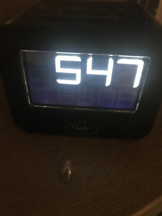 Vaknar med ett ryck, för att direkt ta en bild av väckarklockanHan skrev att han ställde alarm på 5.15, så jag misstänker att han fimpade alarmet, försov sig och vaknade med ett ryck 5.47![]()