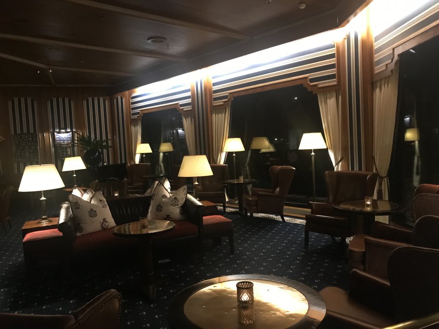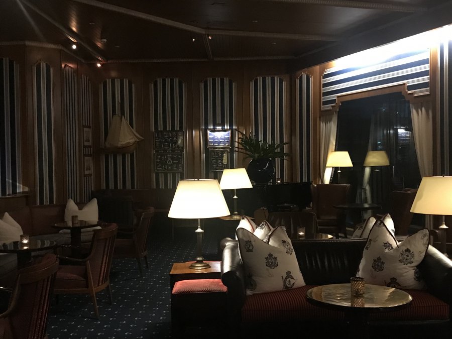 Det blev en trevlig kväll med några få vänner som hade anslutit till den virtuella BC träffen. Därefter gled jag ned till Half Moon cocktail lounge. Den ligger på hotellets baksida, ut mot vattnet och här spenderade jag resten av kvällen i en av de stora fåtöljerna vid panoramafönsterna. Utsikten över kanalen och de båtar som låg förtöjda precis utanför gjorde mig gott sällskap. Brasan knastrade borta i hörnan och det var bara jag och två gäster till här.