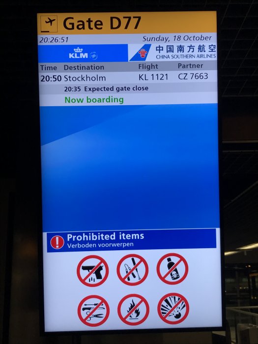 Mitt flyg skulle gå klockan 20:50 från gate D77, en bra bit att gå även om det inte är allra längst bort.