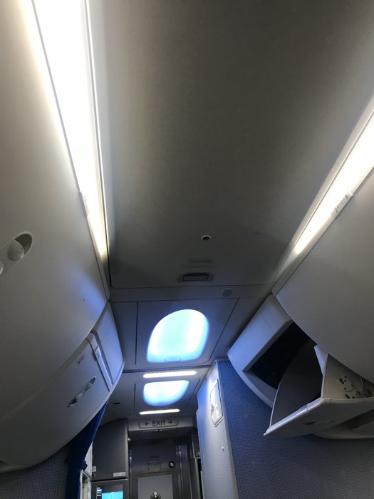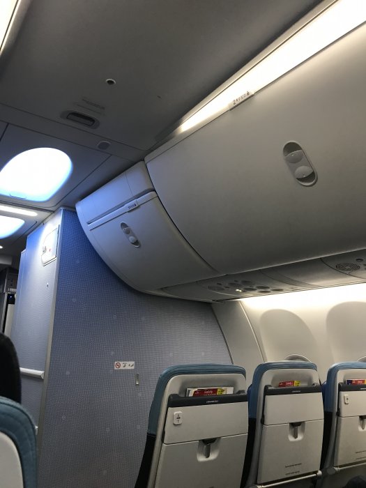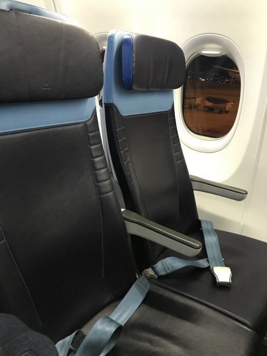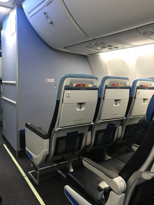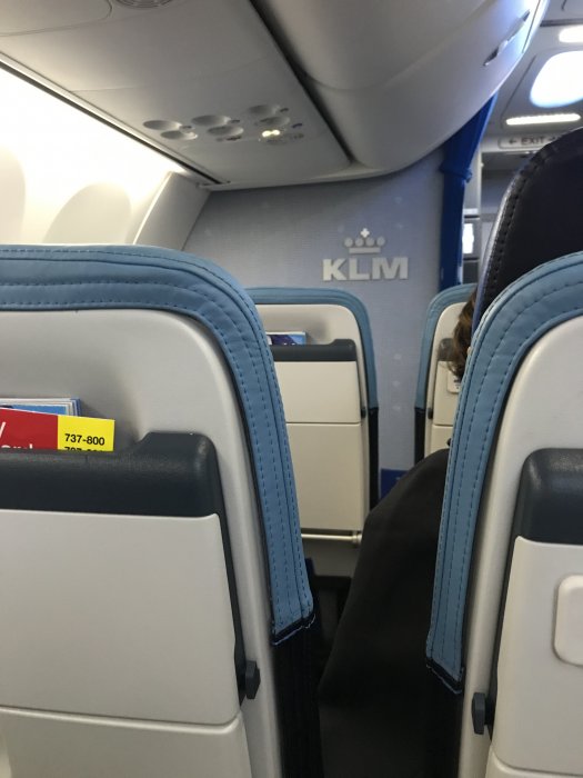 Det luktade nytt ombord, sätena var läderklädda till skillnad mot KLMs klassiska blåa tygstolar, sätena var rakare, med bättre huvudstöd som gick att fälla in från sidorna, betydligt större overhead compartments, nya fina blåa säkerhetsbälten: