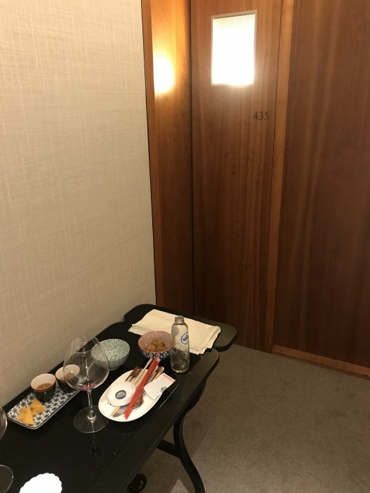 Direkt utanför rummet såg jag vagnen med gårdagskvällens servering.