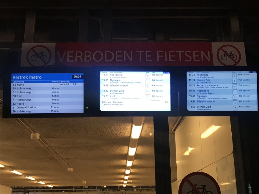 Döm om min förvåning när det, lagom till att jag kom upp på perrongen klockan 19:11 rullar in ett tåg som passerar flygplatsen, på sin väg mot mot Hoofddorp.