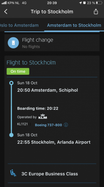 Det blev snabbt dags för boarding och jag gjorde vad jag kunde för att hinna dit i god tid, det var verkligen inte läge att missa ett plan till! Den 18 oktober 2020, klockan 20:37 klev jag ombord på ett av KLMs helt nya 737-800 flygplan!