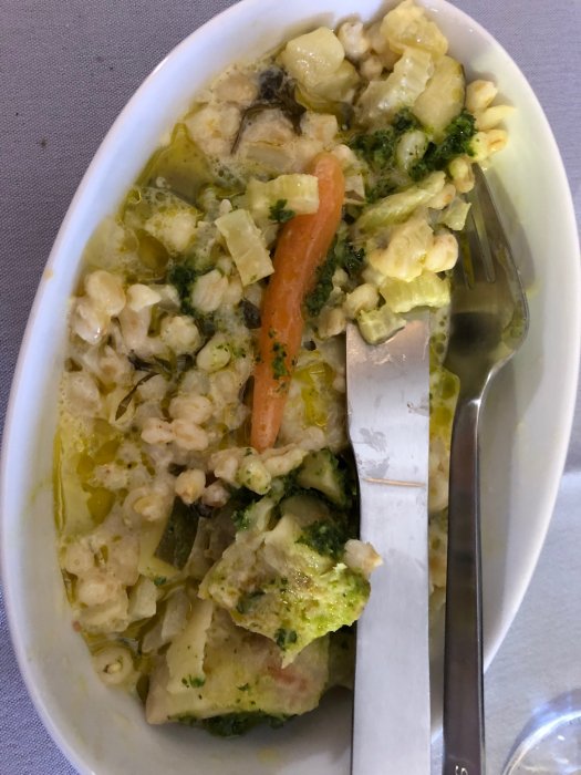 Ja, det där såg verkligen direkt motbjudande ut.Instämmer med att maten på SAS numera blivit helt oätlig men det gäller även Business class. Åkte SK 903 fr Arlanda till NY i slutet av maj och fick helt oätlig mat serverad (kötträtt full med fett och senor). Personalen gav mig istället det vegetariska alternativet, problemet var att merparten bestod av flytande olja. Jag gav därefter upp. Business class på SAS är numera enbart till för om man skall sova, såvida de inte har fel på belysningen och att den automatiskt sätts på var 10 minut.