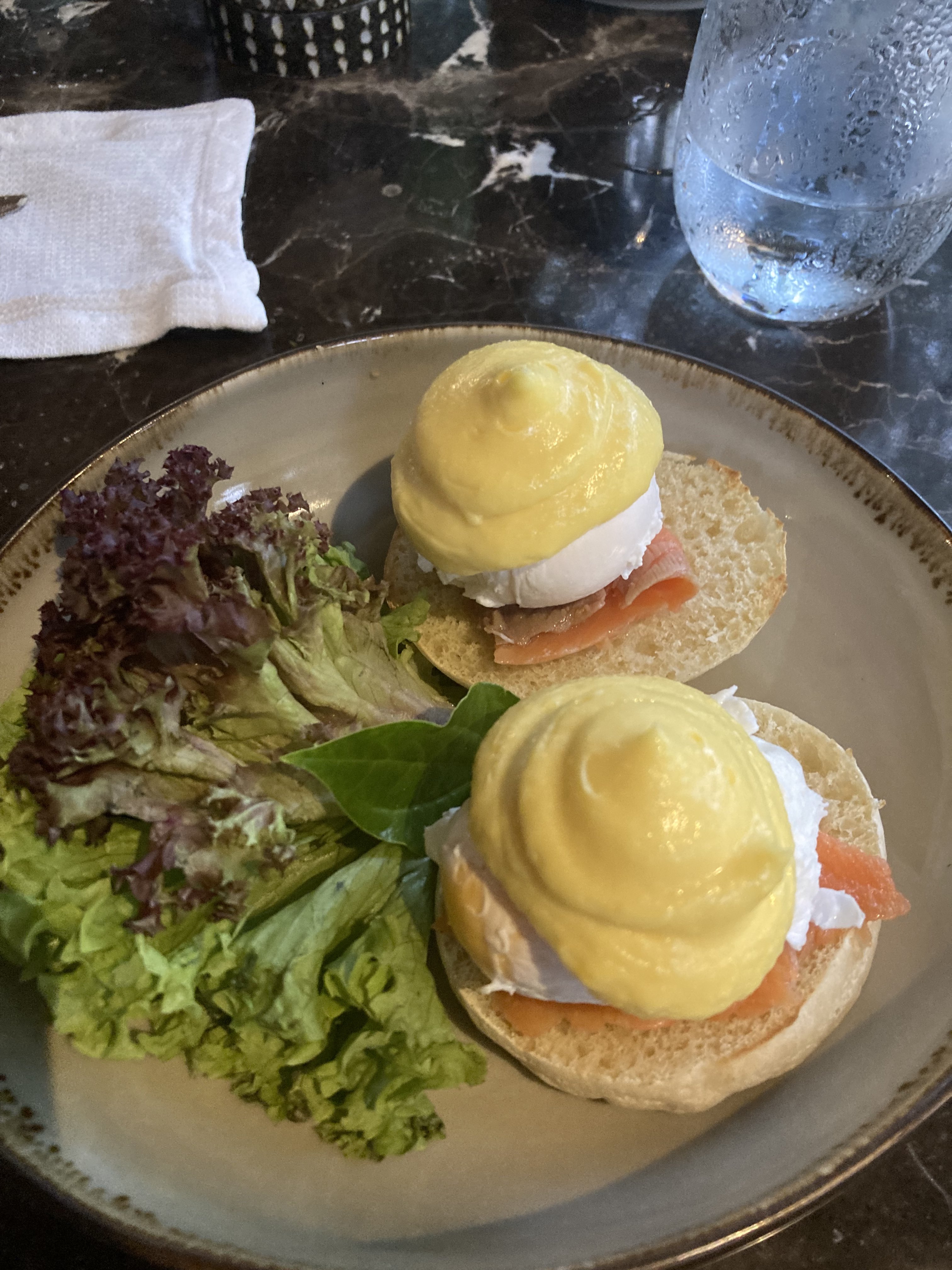 En till Egg Benedict på Ritz-Carlton Langkawi mycket god hollandaisesås men tyvärr alldeles för hård gula i min smak får väl instruera dem vänligt imorgon så har de 5 chanser att göra den perfekt. Tycker dock att någon slags fisk i detta fall lax är fräschare än kött. Resan mot den perfekta egg Benedict fortsätter