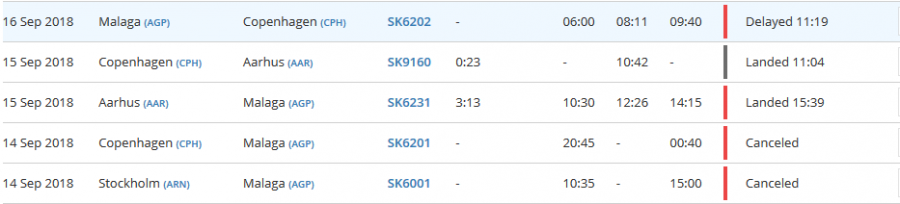Har räknat till minst 6 inställda avgångar till Malaga hittills från i fredags.