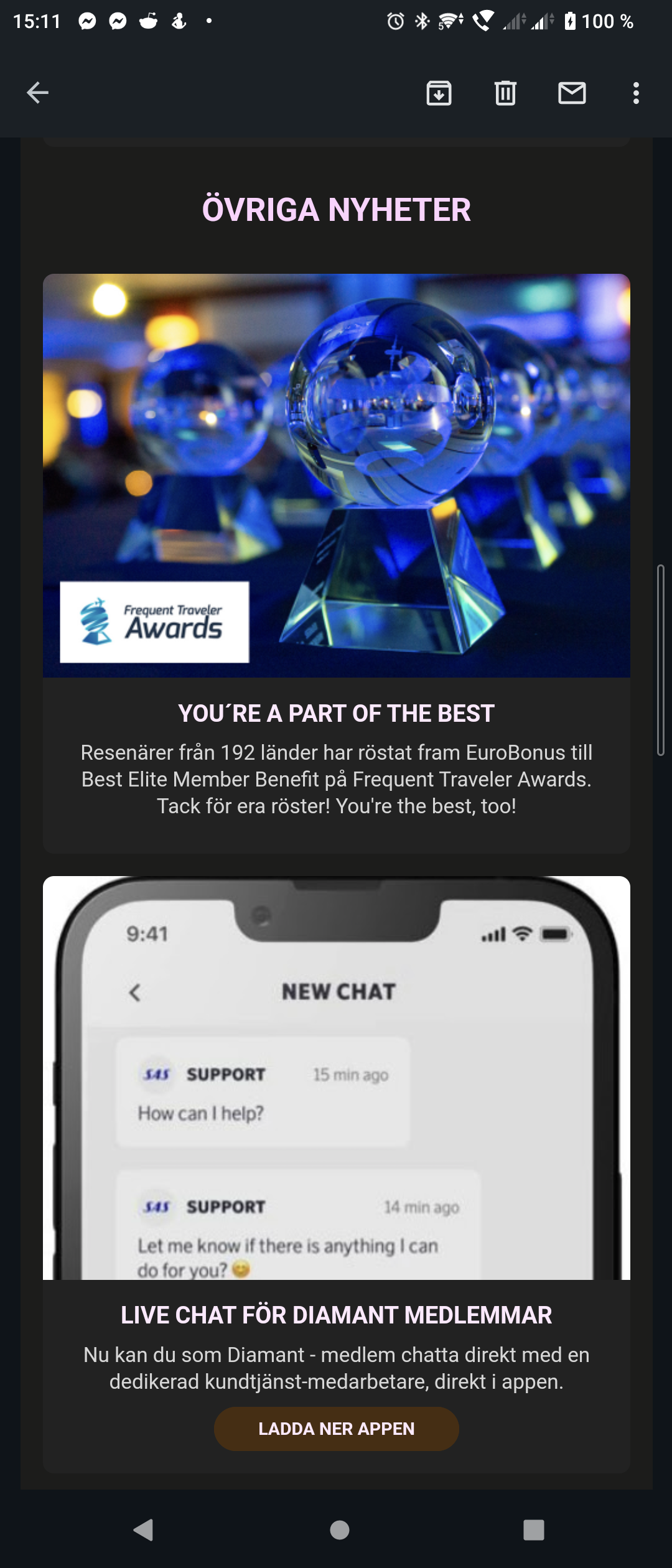 Fick precis ett email med information om nya förmåner för Diamantmedlemmar.