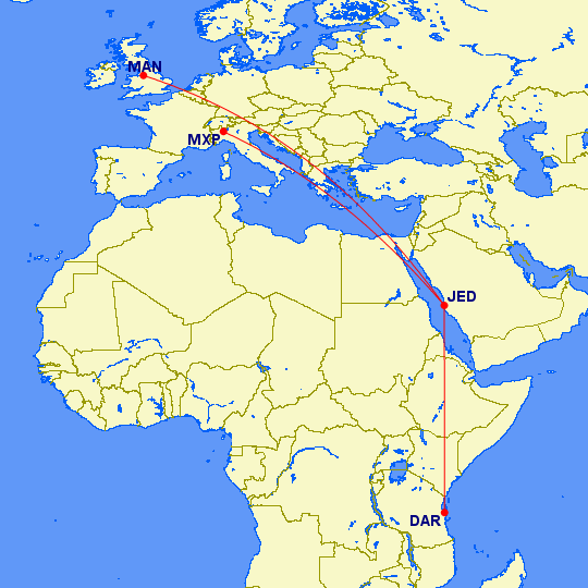 Bookes hos Saudi som multiple legs. Flere datoer med I-class.