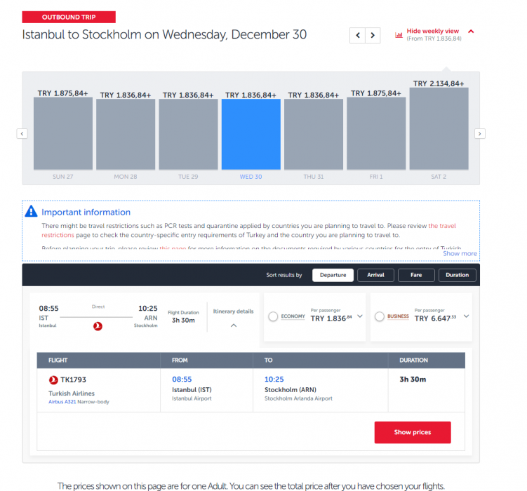 Men om exakt två veckor efter ditt inlägg, dvs onsdag 30/12 så ser det ut att gå att boka på Turkish hemsida: