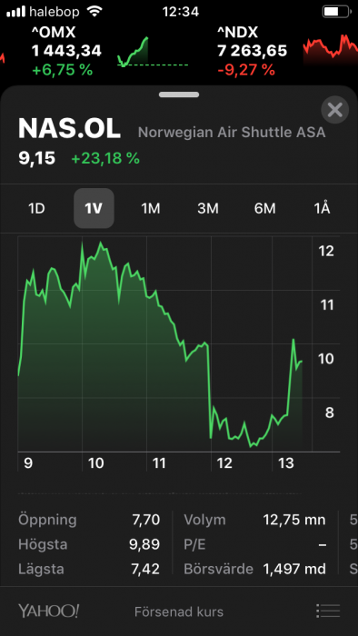 Problemet är att flyget är systemkritiskt. Jag säger inte att världen går under utan Norwegian, men det får stora följdverkningar om flera stora flygbolag lägger ned. Det blir som när Lehman Brothers gick under. Nu idag talar vi inte om då när kapital stoppades, vi pratar om någon mycket viktigare: människors rörelsefrihet. Och då ter sig finanskrisen som en petitess i jämförelse.Ja, om så är fallet, so be it. Tanken med alla räddningspaket som riksbanker, regeringar osv pytsar ut är ju för att rädda starka företag från att gå under i en extrem situation. Nog för att Norwegian är i en extrem siutation som alla andra men starkt kan det inte anses vara. På ett sätt är ju denna kris en eventuell räddningsplanka... dvs att nu kan staten kliva in utan diskussioner, något som inte skulle gått under normala förhållanden.
