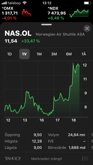 Och idag har Norwegian stigit med 33% (till 11,54) vid lunchtid.
