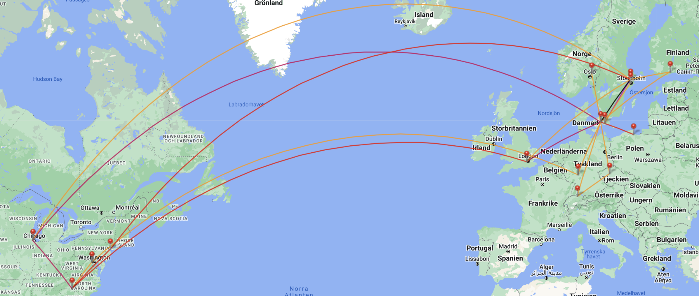 4. Nya flygplatser besökta under året? IAD - Washington, ORD - Chicago, GDN - Gdansk, HEL - Helsingfors.