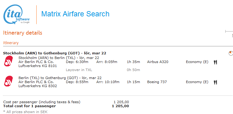 Stockholm Arlanda 07:55 - Göteborg Landvetter 08:50