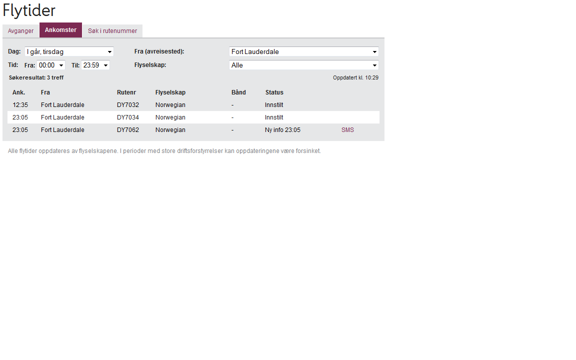 Apropå detta med flygplatsernas websidor och vad handlingbolagen matar dem med...