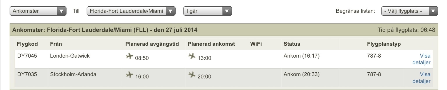 Något varje dag för tidningarna (och då var inte ens gårdagens (fre-lör) försening till Fort Lauderdale från London intressant i svenska tidningar