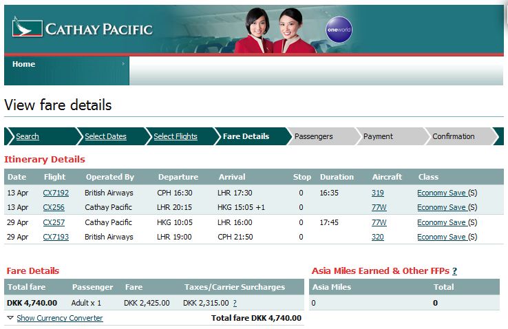 Routing: København-(CX:BA)-London-(CX)-Hong Kong