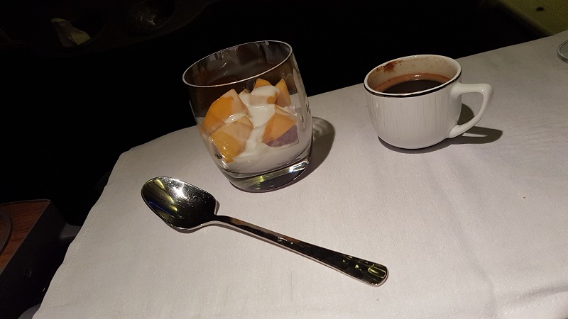 Första bekantskapen med Austrian och blir klart överraskad, förvisso kall måltid men smakade bra och serverat på porslin, att dessutom juste Zweigelt och Grüner Veltliner-viner fanns ombord gjorde inte saken sämre! Väldigt bra service, även om det bara var 5 pax i C på denna flygning, med liten sample size på båda bolagen skulle jag ändå ge Austrian lite högre betyg än Lufthansa på intra-Europa i C. Första flygningen med en Embraer också, en mysig bekantskap!