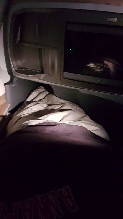 Äntligen är dagen här! Efter många års flygnörderi skall jag få flyga B747-400! Jag har tidigare flugit 747-8, den moderna versionen, men orginalet (i min mening, -100 och -200 är kanske orginal för några :) ) skulle idag sköta rutten ned till Sydney, som lök på laxen på övervåningen i den karaktäristiska puckeln. Första gången med Thai levererade i nivå med Austrian, absolut bra och "typisk" thailändsk hospitality som lät champagnen flöda. Maten var bra men inte riktigt i klass med överaskningen på Austrian, däremot drog IFE jämnt med lagom många relativt moderna titlar att avnjuta. Stolen då, den är som bekant inte lie-flat utan någon 170-graders "70-talsvariant", men jag måste ändå säga att jag sov klart mycket bättre än förväntan, den var bredare än Austrians stol och trots att man bara nästan låg platt så var det väldigt bekvämt. Att kabinen på övervåningen är extra tyst bidrar också, det enda minuset möjligen är att inte alla stolar har isle-access.