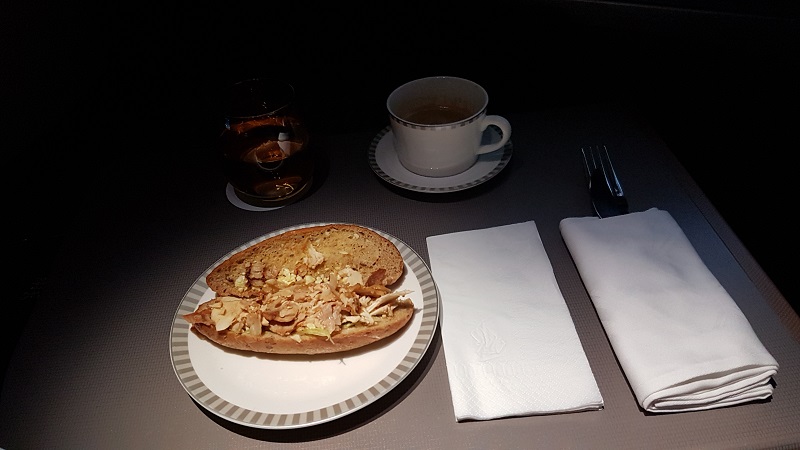 Dags för nästa premiär, i dubbel bemärkelse! Första flighten med A350 och första flighten med Singapore Airlines. Förväntningarna var så klart höga efter allt man läst här på forumet och de förväntningarna uppfylldes med god marginal. Först och främst var servicenivån överlägset bäst av de bolag jag provat på denna resa, det enda som toppar servicen på den här flighten var när jag flög ensam i F från Mexico City med Lufthansa och hade personalen för mig själv. Vid ombordstigning blev jag visad till min plats, erbjuden att lämna kavajen till förvaring samt direkt fråga om jag ville ha champagne eller något annat att dricka, föredömligt! Nivån höll hela flighten och det var aldrig någon fördröjning när man påkallade uppmärksamhet eller något behov av att göra det då glasen fylldes på vid behov och de gick flera gånger med nästa "vagn" så man hann äta klart i lugn och ro. Världsklass! Champagnen gillade jag skarpt, Charles Heidsieck, så de fick nog offra en flaska enkomt för undertecknad. Kabinen var väl inredd, luftig och lagomt privat när man satt i stolen, förutom att det var lite svårt att styra fram bordet så pass att man kunde kliva ut så var allt top-notch, gott om utrymme, stolen är nästan dubbelt så bred som Austrian vilket gör att sängen när stolen fälls ned blir nästan så bred som en enkelsäng vilket är bra när man tillämpar 50-100 olika "benpositioner" under en natt :) Det enda att klaga på där är att "fotlådan" som man måste ha fötterna i när man ligger raklång, den är lite begränsande och tar bort en del komfort. Stolen i upprätt och lounge-läge är väldigt bekväm och med en stor avställningsyta på sidan för snacks och dryck när man tittar på film, på denna flygning blev det den nya Papillon. Rejält stor skärm för IFE och digert urval av titlar, men på vissa titlar gick det inte att få bort den kinesiska textningen även fast man valde "no subtitles", vilket var irriterande men gick att genomleva. Jag hade såklart "book the cook" och på denna flygning skulle det bli "Roast duck with rice" som definitivt var bra, klart bättre än ankan jag fick på Thai och absolut i klass med de två upplevelser jag haft i Lufthansa F, så en 9a är ett juste betyg med tanke på dryckes- och tillbehörsutbudet också. "Between meal snack" provkördes först på nästa flight.