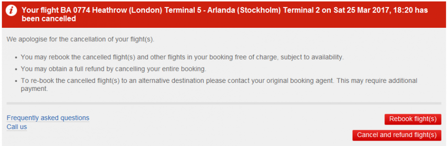 Testade att ändra bokningen och kunde välja BA774 igen. Är det inställt eller är det bara en bugg?
