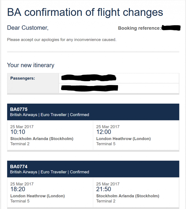 Det är likadant även för mig. Jag förstår inte varför.Jag kollade nyss min bokning och såg att BA774 var cancelled. Någon annan som ser samma sak?