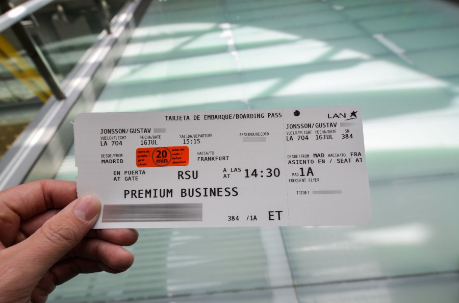 SAS Youth ner från Arlanda till Frankfurt och tillbaka via Köpenhamn för 1703 SEK, LAN Airlines från Frankfurt till Madrid och tillbaka för 118 GBP (~1600 SEK).