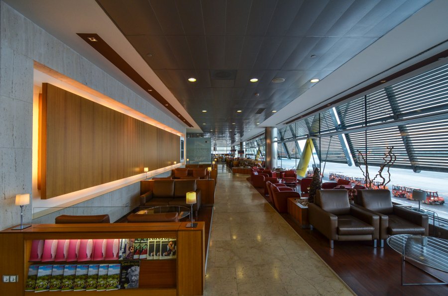 En rätt stor lounge med gott om sittplatser och de faciliteter man kan tänkas behöva. Stora fönster ut mot plattan, de släpper inte bara in naturligt ljus utan tillåter även besökarna att titta på planen som åker förbi!