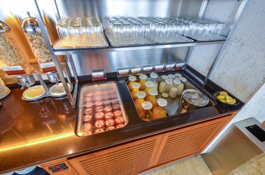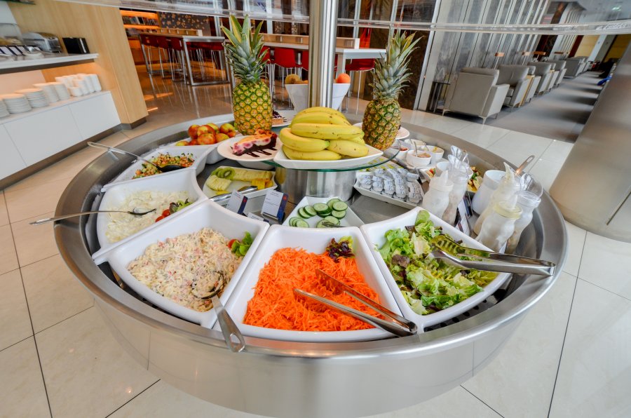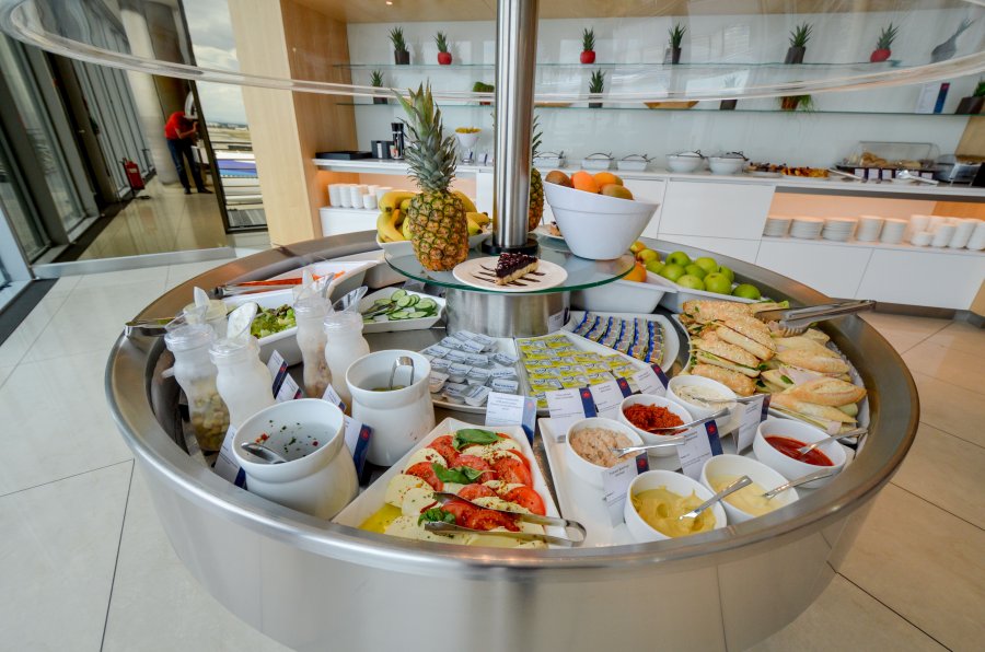 Ev. en lite otymplig layout med all mat/dryck i princip placerad en lång bit ifrån allt annat, men det är antagligen eftersom loungen är så långsmal. Fanns en kyl med snacks som vi av någon outgrundlig anledning ej tog en bild på, hur som helst så fanns det en hel del olika wraps och mackor i den.