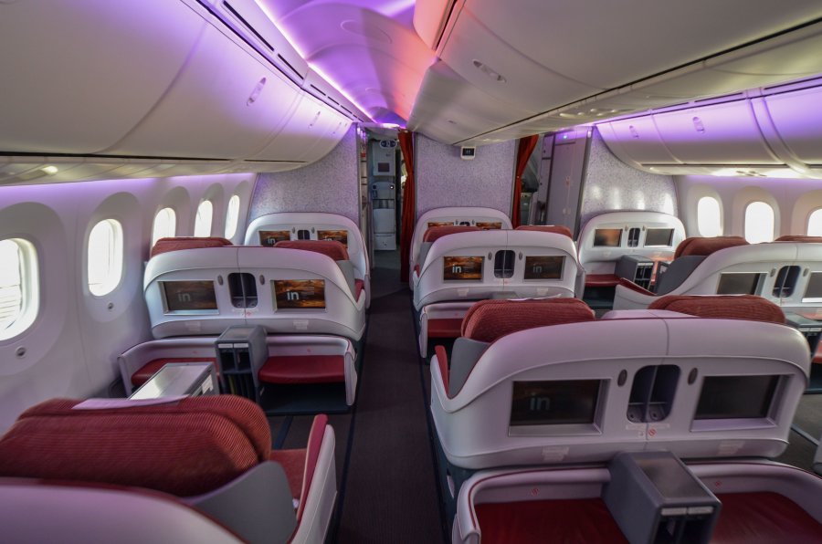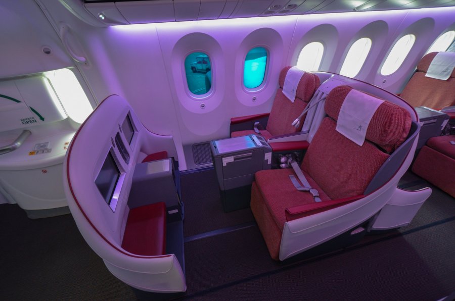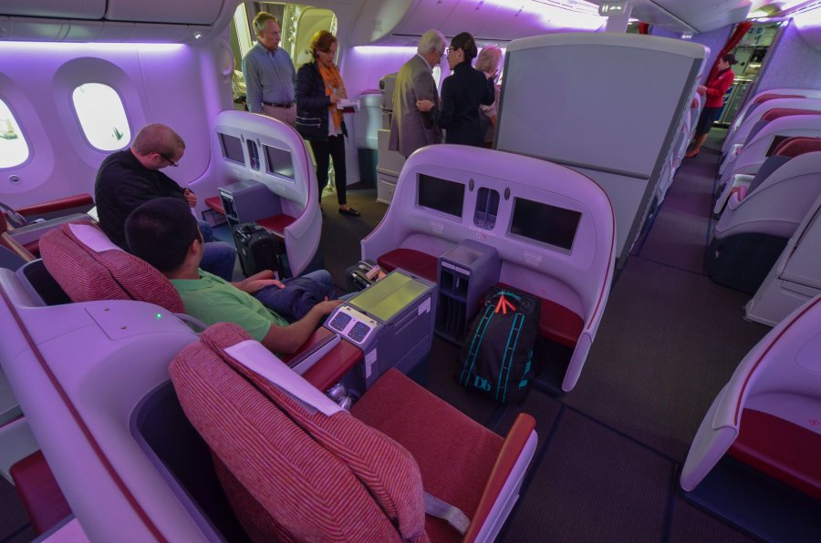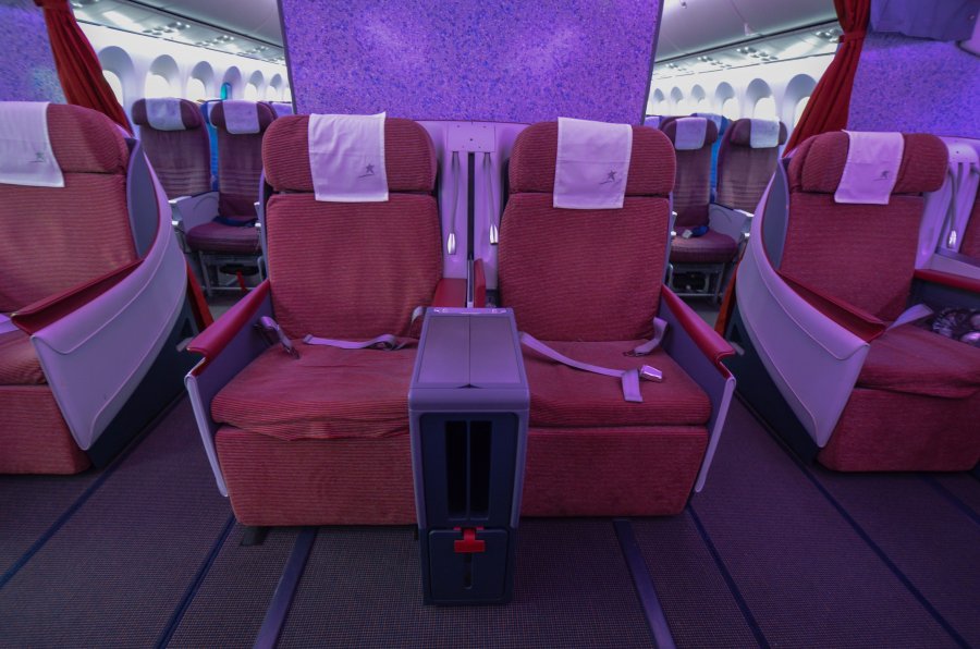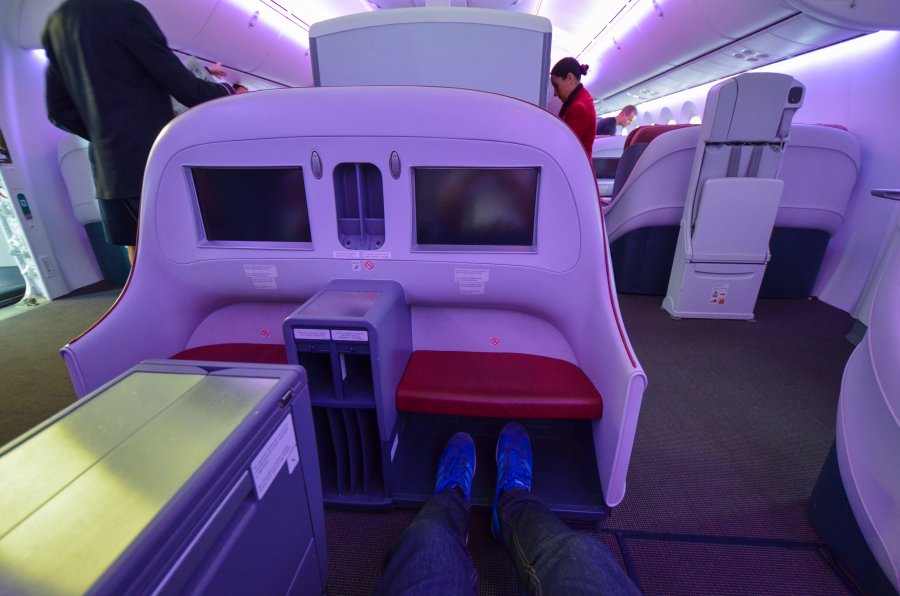 Business-kabinen utgörs av 5 rader i 2-2-2 config, det förvaringsutrymme som finns att tillgå är det man har över huvudet, tyvärr inte så mycket mer i anslutning till själva stolen förutom lite under armstödet.