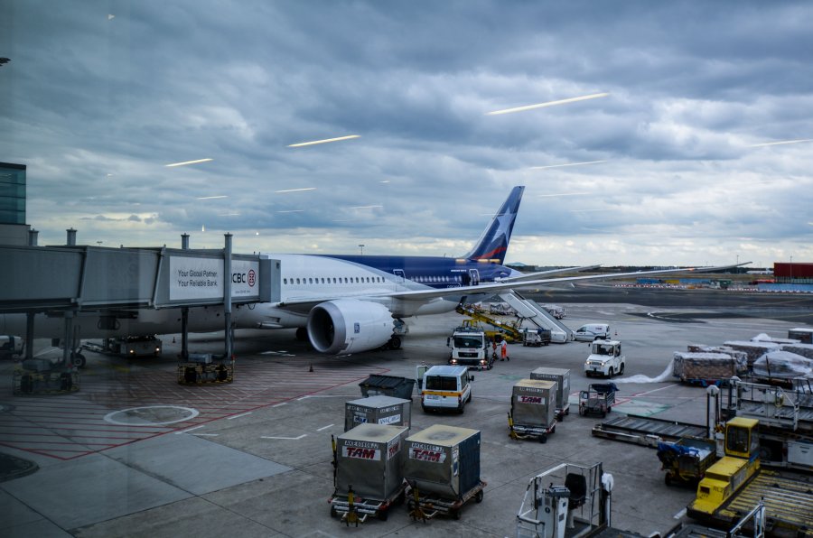 Air Canada på väg ut, LAN Airlines Boeing 787-8 på väg in