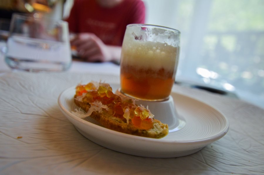 En intressant liten rätt med intensiva smaker, tydlig sparrissmak och ett kul sätt att servera rätten på. Den lilla toasten med rom kompletterade shoten med sin tydliga sälta.