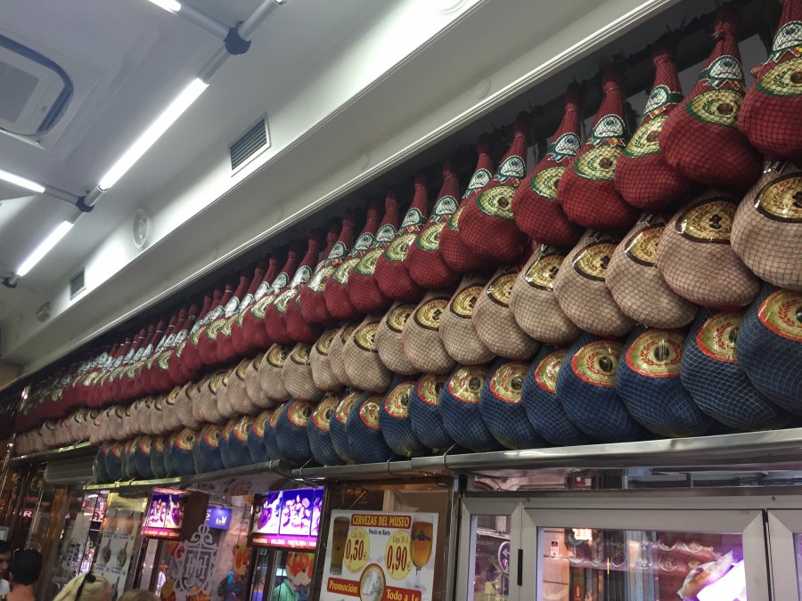 Efter lite fika så promenerade vi en bit och kom fram till ett ställe vid namn Museo Del Jamón, hänger hur mycket jamón som helst på väggarna! Ett schysst ställe som ligger ett stenkast från Puerta del Sol, rekommenderas!
