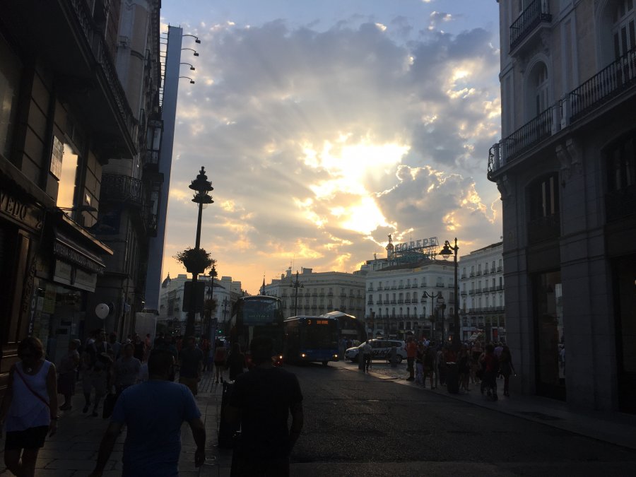 Vi rörde på oss mot nästa stopp, på vägen bjöd Madrids himmel på spektakulära vyer.