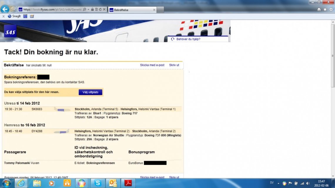 Sökte min bokning www.sas.se och sen började det mest intressantaste av hela historien.