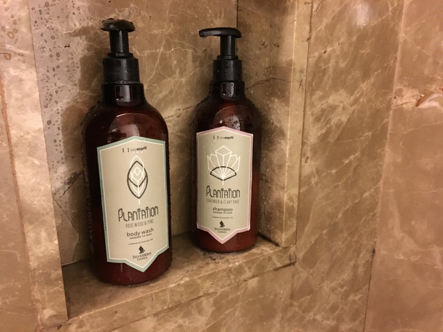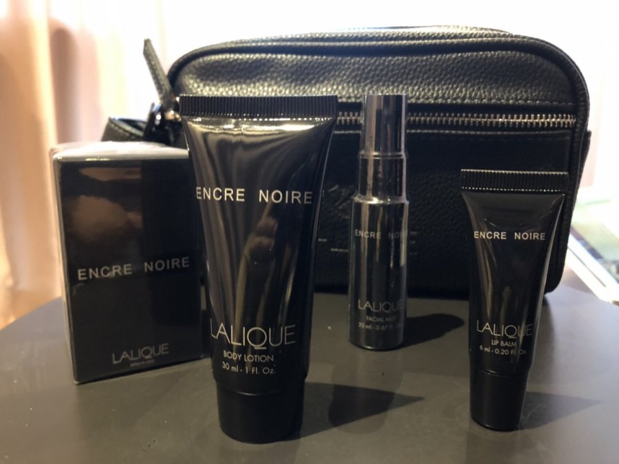 Den här gången bestod necessären av lite mer praktiska saker. Läppjox, body lotion, ansiktsspray och lite parfym. Det kanske bara är på dagsflygningar man vill dra igång hemma-spa med doftljus i kabinen.