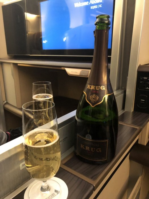 Sen var det dags att sova igen och flygvärdinnorna vecklade ut stolarna till säng åt oss båda. Även den här gången var de fyra platserna i första klass fulla. Jag har läst om andra som har haft möjlighet att växla mellan säng och säte. Det hade ju varit smidigt men bra för Singapore Airlines med fulla flyg så klart.