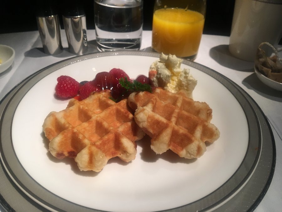 Jag sov lite halvrisigt under natten. Sängen är inte speciellt mjuk och skarvarna i den utfällbara stolen känns ganska tydligt. Dessutom var det ganska mycket turbulens under natten vilket gjorde att jag vaknade stup i kvarten och utrop om säkerhetsbälte på var frekvent återkommande.